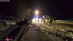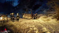 THÖRL (STMK): In den Morgenstunden des 20. Jänner 2018 wurden die Freiwilligen Feuerwehren Thörl und Kapfenberg-Stadt zu einem Verkehrsunfall auf der Mariazellerbundesstraße in Thörl alarmiert. Auf der schneeglatten Fahrbahn kam ein PKW von der Straße ab und überschlug sich anschließend.