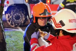 Die sofort durchgeführte Personensuche verlief erfolglos, jedoch konnten drei verängstigte Hunde aus der stark verrauchten Wohnung gerettet werden. Die Brandbekämpfung mit Unterstützung der Wärmebildkamera ergab, dass es sich um angebranntes Kochgut handelte, das sich noch auf der Herdplatte befand und bereits in Flammen stand. Glücklicherweise konnte ein übergreifen auf den restlichen Teil der Küche verhindert werden.