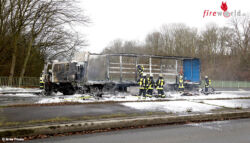 ESSEN (DEUTSCHLAND): Auf der Bottroper Straße in Essen ist am Vormittag des 24. Jänner 2018 ein Sattelzug (40-Tonner) in Brand geraten. Das Fahrzeug war in Richtung Stadtmitte unterwegs und hatte 15 Tonnen Kunststoffstoßstangen geladen.