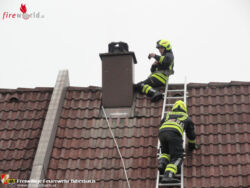Beim Eintreffen der Feuerwehr schlugen bereits Flammen aus dem Kamin, die weitere Erkundung bestätigte die Rauchentwicklung am Dachboden. So wurde umgehend ein Atemschutztrupp zur Erkundung auf den Dachboden entsandt. Dieser kontrollierte den Kamin und die nähere Umgebung mit Hilfe der Wärmebildkamera. Zeitgleich wurde ein Rauchfangkehrer hinzugezogen, um die weitere Vorgehensweise abzustimmen.