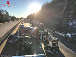 VILLACH (KTN): Gemeinsam mit Feuerwehren aus dem angrenzenden Bezirk Villach-Land sowie aus dem Bezirk Spittal wurde die Hauptfeuerwache Villach am 29. Jänner 2018 zu einem schweren Verkehrsunfall auf die A10 Tauernautobahn alarmiert.