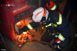 Nach Ankunft des Rauchfangkehrers wurde begonnen das Brandgut unter Atemschutz aus dem Ofen auszuräumen und vor dem Objekt abzulöschen. Parallel dazu wurden die in Brand geratenen Ablagerungen im Kamin durch den Rauchfangkehrer entfernt. Dieser Vorgang musste des Öfteren wiederholt werden, erst gegen 11:20 Uhr konnten die Arbeiten beendet und die Einsatzbereitschaft wieder hergestellt werden. Auch Bürgermeister Herbert Janschka machte sich persönlich ein Bild der Lage vor Ort. Zur Sicherheit der eingesetzten Mannschaft stand den gesamten Einsatz über ein Team des Roten Kreuz in Bereitschaft.