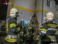 TRAUN (OÖ): Im Bereich einer Mülltonne an einer Hausfassade in Traun kam es am Abend des 29. Januar 2018 zu einem Brand, daher wurde die Feuerwehr anfänglich aufgrund unklarer Details als Brandverdacht alarmiert.