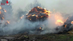 Fünfeinhalb Stunden nach Einsatzbeginn konnte die Einsatzstelle an der Bergener Straße um 19.45 Uhr an den Eigentümer übergeben werden. Zuvor waren die Reste der knapp 300 Strohballen mit einem massiven Wassereinsatz aus sieben Strahlrohren abgelöscht worden. Bis zu diesem Zeitpunkt waren deutlich mehr als 3/4 der Strohballen kontrolliert verbrannt. Die Löschmaßnahmen zeigten sehr schnell den gewünschten erfolg, sodass auch die Warnung vor einer Geruchsbelästigung aufgehoben wurde. Insgesamt waren rund 40 Einsatzkräfte überwiegend der Freiwilligen Feuerwehr vor Ort.