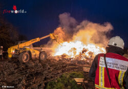 Die rund rund 40 Einsatzkräfte der Löscheinheiten Nord, Langender und Brandwacht der Freiwilligen Feuerwehr hatten einen Löschangriff vorbereitet, um am Abend, als der Strohhaufen weiter heruntergebrannt war, das Feuer abschließend zu löschen.