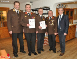 Harald Dunzinger wurde nach 25 Jahren im Kommando, davon 10 Jahre als Kommandant-Stellvertreter, zum Ehren-Oberbrandinspektor ernannt. Karl Dunzinger wurde nach 15 Jahren Kommandozugehörigkeit mit dem Ehren-Amtswalter bedacht.