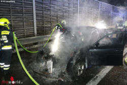 LAXENBURG (NÖ): Aus bislang unbekannter Ursache geriet am 3. Februar 2018 ein Pkw auf der A2 Südautobahn in Fahrtrichtung Wien bei Straßenkilometer 9,3 in Brand.