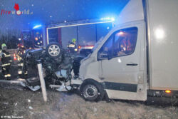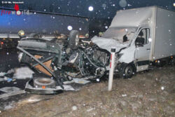 Der erste Einsatz war auch zugleich der tragischste. Kurz nach 06.00 Uhr Früh überschlug sich eine 29- Jährige in einem Pkw mit Badener Kennzeichen. Ein dahinter fahrender Kleintransporter konnte nicht mehr rechtzeitig bremsen und fuhr dem am Dach liegenden Pkw in die rechte hintere Seite. Beide Fahrzeuge verkeilten sich dadurch. Der Pkw wurde seitlich regelrecht aufgerissen. Ersthelfer zogen die Lenkerin aus dem Fahrzeug und begannen noch vor dem Eintreffen der Einsatzkräfte mit den Reanimationsmaßnahmen.