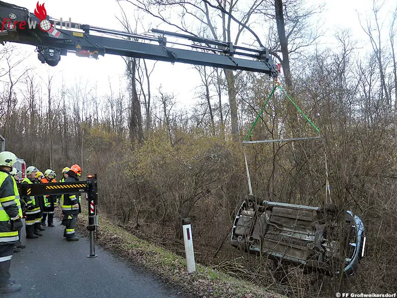 Aus nicht näher bekannter Ursache kam eine Fahrzeuglenkerin mit ihrem Pkw auf dem Kreuzberg von der Fahrbahn ab und landete auf dem Dach liegend im Straßengraben. Durch die Polizei wurde zur Bergung des Fahrzeuges die Hilfe der FF Großweikersdorf angefordert.