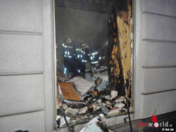 Beim Eintreffen der Berufsfeuerwehr Wien schlugen Flammen aus der geborstenen Auslagenscheibe. Der Straßenzug der Buchengasse war massiv verraucht. Unter Atemschutz wurden zwei Löschleitungen zur Brandbekämpfung vorgenommen, während zeitgleich sowohl das Stiegenhaus und die Wohnungen des Brandobjektes als auch des Nachbargebäudes auf eine eventuelle Verrauchung kontrolliert wurden.
