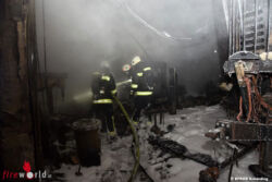 ST. ROMAN (OÖ): Am Mittwoch, 7. Februar 2018, wurden um 20:54 Uhr die Feuerwehren Aschenberg, Rain, St. Roman und Stadl in die Ortschaft Simling, Gemeinde St. Roman, gerufen. Beim Eintreffen der Feuerwehren stand eine Halle eines Landmaschinenbetriebes in Vollbrand.