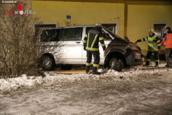 OTTNANG (OÖ): Bei winterlichen Straßenverhältnissen ist Mittwochabend, 7. Februar 2018, in Ottnang am Hausruck (Bezirk Vöcklabruck) ein Kleinbus verunfallt. Das Auto schleuderte gegen die Hausmauer wo es beschädigt zum Stillstand kam.