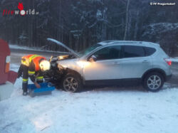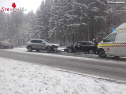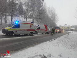 PREGARTEN (OÖ): Zu einem Frontalzusammenstoß mit zwei verletzten Personen kam es am Nachmittag des 07.02.2018 auf der Gutauer Landesstraße (L1472). Ein in Richtung Pregarten fahrendes Auto kam in einer langgezogenen Rechtskurve auf der winterlichen Fahrbahn vom Fahrstreifen ab und kollidierte frontal mit einem entgegenkommenden Fahrzeug.