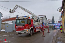 Am eingeschossigen Nebentrakt des Wohnhauses drang im hinteren Bereich massiv Rauch aus dem Ziegel gedeckten Dachstuhl aus. Die Bewohner des Hauses befanden sich bereits im Freien und in Sicherheit. Somit konnte seitens der Feuerwehr sofort mit der Aufnahme der Löscharbeiten begonnen werden.