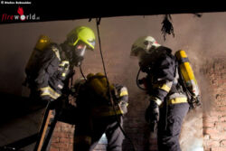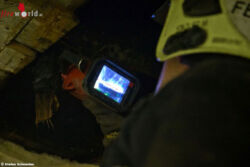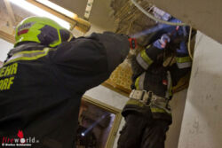 Im Zuge der Aufräumarbeiten und Nachlöscharbeiten durch vorheriges Aufspüren von Glutnestern mittels Wärmebildkameras musste dann aber festgestellt werden, dass im Deckenbereich zu den darunterliegenden Wohnräumen an einigen Stellen immer noch eine erhöhte Temperatur gemessen wurde. Nach Öffnen der Dübel Decke (Dippeldecke bzw. Balken-Balkendecke) entdeckten die Feuerwehreinsatzkräfte einen fortgeschrittenen Schwellbrand, der sich dort eingenistet hatte.