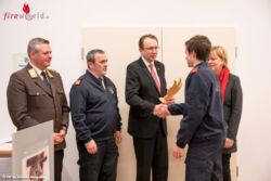 Ein besonderer Punkt auf der Tagesordnung war bestimmt die Auszeichnung mit der Florianiplakette an Bernard und René Voak, beide Geschäftsführer Firma NXP, durch Landesfeuerwehrkommandant Fahrafellner für die über 16 Jahre intensive Zusammenarbeit mit der Feuerwehr St. Pölten-Wagram im Zuge sämtlicher Veranstaltungen mit Know-How und Equipment.