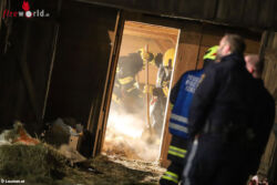 In einer Scheune kam es am Abend aus bisher unbekannter Ursache zu einem Kleinbrand. Die Scheune war stark verraucht. Mehrere Hühner konnten unter schwerem Atemschutz rechtzeitig in Sicherheit gebracht werden. Die Feuerwehr räumte das Stroh aus und konnte so die Glutnester ablöschen. Größerer Schaden konnte somit erfolgreich verhindert werden. Die genaue Brandursache war am Abend noch nicht geklärt. Die Polizei ermittelt.
