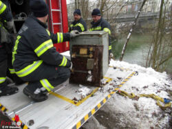 OHLSDORF (OÖ): Von der Polizeiinspektion Gmunden wurde die Feuerwehr Ohlsdorf ersucht, einen großen Tresor aus der Traun zu bergen. Da die Ermittlungen bereits abgeschlossen waren, wurde dieser am Samstag, 10. Februar 2018, geborgen.