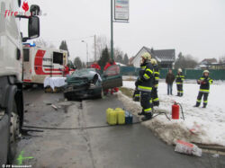 Am 10. Februar wurden kurz vor 8 Uhr die beiden Gössendorfer Feuerwehren – die Freiwilligen Feuerwehren Thondorf und Gösssendorf – zu einem Verkehrsunfall auf der Bundesstraße alarmiert. Ein Pkw war auf die linke Straßenseite geraten und dort frontal mit einem Sattelschlepper kollidiert. Der Fahrer des Personenautos wurde dabei in seinem Fahrzeug eingeklemmt.