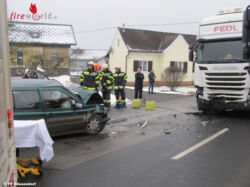 GÖSSENDORF (STMK): Ein Frontalzusammenstoß zwischen einem Pkw und einem Sattelschlepper sorgte am Morgen des 10. Februar 2018 für einen Feuerwehreinsatz im Gemeindegebiet von Gössendorf. Die eingesetzten Feuerwehren retteten den Fahrer aus dem Auto.