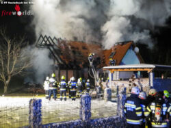 Im Bereich des Wintergartens stand das Einfamilienhaus bereits im Vollbrand. Dadurch ordnete der Einsatzleiter sofort einen umfangreichen Löschangriff unter schweren Atemschutz an und forderte weitere Feuerwehren zur Unterstützung nach. Durch den bereits fortgeschrittenen Brandverlauf, war ein umfangreicher Löschangriff mit mehreren Löschleitungen erforderlich.