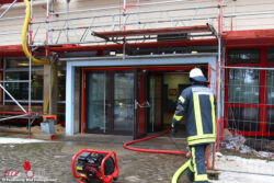 Mit Atemschutz drangen die Ehrenamtlichen in den verqualmten Bereich ein und konnten das Feuer schnell im Bereich eines Klassenraumes lokalisieren und löschen. Im Anschluss folgten ausgiebige Belüftungsmaßnahmen um das Gebäude rauchfrei zu bekommen. Die Ausbreitung des Feuers konnte durch die Feuerwehr verhindert werden. Um alle Glutnester zu erreichen, war es nötig einen Teil der Leichtbauwände mit Hilfe einer Rettungssäge und Brechwerkzeug zu öffnen.