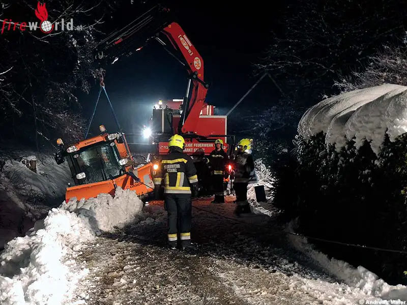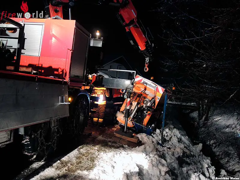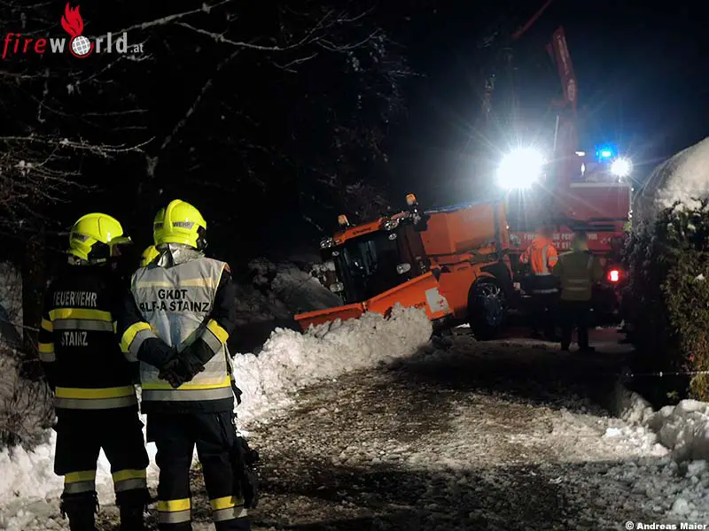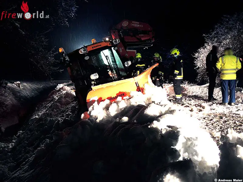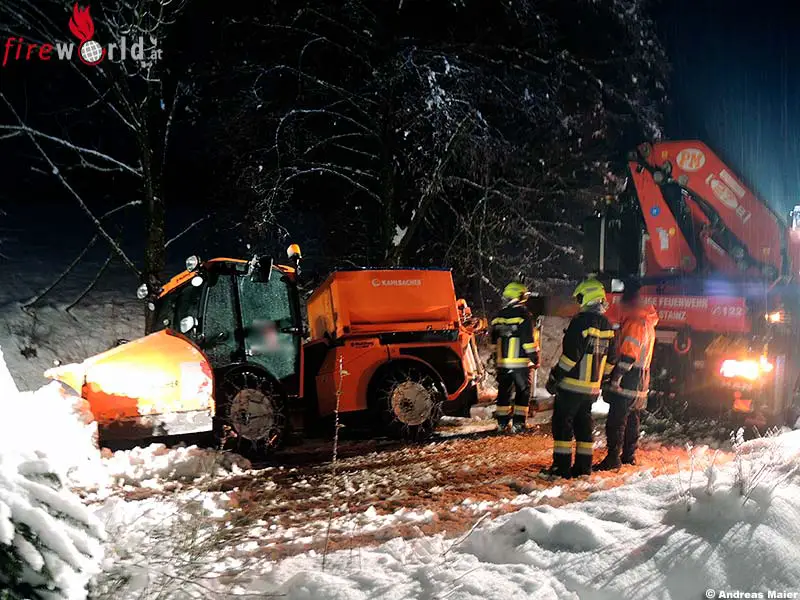 STAINZ (STMK): Am Montag, den 12. Februar 2018, kurz vor 18.00 Uhr wurde die Freiwillige Feuerwehr Stainz zur Bergung eines Winterdienstfahrzeugs nach Neurath gerufen.