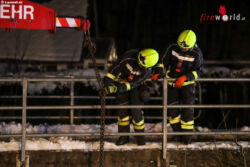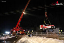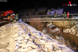 Oö: Glatteis → Notarzteinsatzfahrzeug in Altmünster in Bach gestürzt
