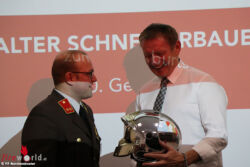 Redhammer Johann überreichte anschließend Bürgermeister Walter Schneiderbauer anlässlich seines 60. Geburtstages einen Sektkühler in Form eines Dräger Einsatzhelmes.