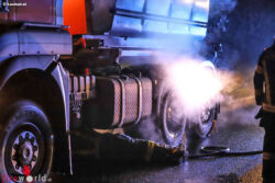 Oö: Feuerwehr kühlt stark überhitzte Bremse eines Streufahrzeuges auf Westautobahn