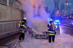 Im Bereich des Effnerplatz trafen die Kräfte der Feuerwehr auf den brennenden VW Jetta. Mit einem Schaumrohr und durch Atemschutzgeräte geschützt, löschten sie zügig den Brand des Fahrzeuges. Der Besitzer des VW musste unverletzt und tatenlos dem Geschehnis folgen. Nach der Unfallaufnahme und dem Abtransport des ausgebrannten Wracks konnten zwei der drei Fahrspuren wieder frei gegeben werden. Die rechte Spur muss aufgrund der Brandeinwirkung und den Schäden vorerst gesperrt bleiben. Ein Schaden kann nicht benannt werden, die Ursache ist nicht bekannt.