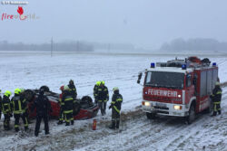 HOLLABRUNN (NÖ): Am Freitagvormittag, 16. Februar 2018, ereignete sich auf der Landesstraße 27, Oberthern Richtung Hollabrunn ein Verkehrsunfall. Eine Lenkerin kam mit ihrem Fahrzeug von der Straße ab, überschlug sich über eine Böschung hinunter und landete in weiterer Folge auf dem Dach liegend in einem Acker.