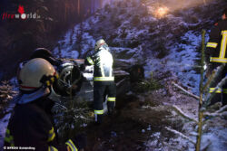 Ein Pkw kam von der Fahrbahn ab, streifte einen Baum und stürzte 50 Meter einen bewaldeten Abgrund hinunter. Dort kam das Fahrzeug am Dach in der Nähe eines Baches zum Stillstand. Auf der Beifahrerseite des Fahrzeuges wurde durch die Kameraden Erdreich abgetragen und so eine Öffnung zum Fahrzeug geschaffen. Der Insasse wurde durch das Rote Kreuz erstversorgt. Zur Rettung wurde durch die Feuerwehr eine Brücke zur leichteren Überquerung des Baches geschaffen. Die Straße war während des Einsatzes für ca. 90 Minuten gesperrt.