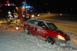Oö: Pkw kommt von der Fahrbahn ab und steckt im Schnee fest