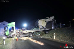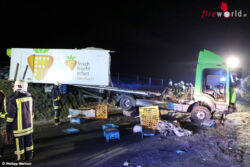 OBER-GLEEN (DEUTSCHLAND): Zu einem schwerem Verkehrsunfall kam es am frühen Montagmorgen, 19. Februar 2018, auf der Bundesstraße 62 zwischen Kirtorf und Alsfeld im Vogelsbergkreis. Kurz vor dem Ortsschild von Ober-Gleen kam ein mit mehreren Tonnen Gemüse beladener Lastwagen nach links von der Fahrbahn ab.