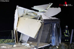 Der 53-jährige Fahrer sowie seine 64-jährige Beifahrerin aus dem Landkreis Fulda zogen sich schwere Verletzungen zu, eine Notärztin und zwei Rettungsteams versorgten sie. Die Freiwillige Feuerwehr der Stadt Kirtorf unterstützte die Rettungsarbeiten und brachte Bindemittel aus. „Auf der rund 100 Meter langen Unfallstrecke wurden Öl und Kraftstoff verteilt“, so Kirtorfs stellvertretender Stadtbrandinspektor Julian Schneider. Insgesamt 40 Feuerwehrleute aus Heimertshausen, Kirtorf, Lehrbach und Ober-Gleen waren im Einsatz. Der entstandene Sachschaden konnte von der Polizei vor Ort noch nicht beziffert werden. Noch völlig unklar ist die Ursache für den Unfall.