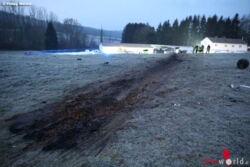 Das Fahrzeug wälzte eine Leitplanke nieder, flog rund zehn Meter durch die Luft, schleuderte über eine Weide, rutschte einen Abhang hinab und kam schließlich auf der Landesstraße zwischen Ober-Gleen und Heimertshausen zum Stillstand.