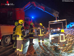 WAIDHOFEN AN DER THAYA (NÖ): Um 22:02 Uhr des 20. Februar 2018 wurde die Freiw. Feuerwehr Waidhofen/Thaya zu einer Fahrzeugbergung auf der Bundesstraße 5 Höhe Kreuzung Vestenötting alarmiert. Da sich noch einige Kameraden nach einer Schulung im Feuerwehrhaus befanden, rückten diese bereits nach wenigen Minuten aus.