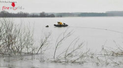 Nach der Erkundung und der Hinzuziehung des Jagdausübungsberech-tigten wurde der Entschluss gefasst, die Feuerwehr Bad Segeberg mit ihrem Boot, welches mit einen Eisschlitten ausgerüstet ist, nach zu alarmieren.
