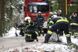 MICHAELNBACH (OÖ): Schwierig gestaltete sich Mittwochnachmittag, 21. Februar 2018, eine Lkw-Bergung in einem Waldstück in Michaelnbach (Bezirk Grieskirchen).