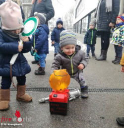 Die erste Hürde (… so ein großes Feuerwehrauto …) wurde nach anfänglicher Skepsis mancher Kinder von allen überwunden und dem Erkunden des Tankwagens der Feuerwehr stand nichts mehr im Weg.