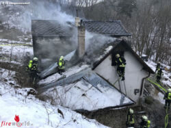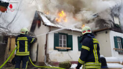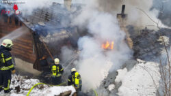 Die Flammen schlugen durch das Dach sowie aus den Fenstern. Die anwesenden Anrainer konnten Entwarnung geben, dass sich keine Personen im Gebäude befinden.
