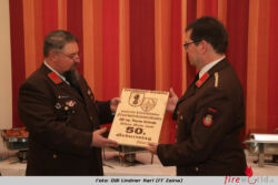 Im Anschluss an die Jahreshauptversammlung lud der Kommandant anlässlich seines 50. Geburtstages zu Speis und Trank (OBI Ing. Thomas Schmatz ist seit 27 Jahren Kommandant der FF Pettendorf).