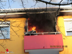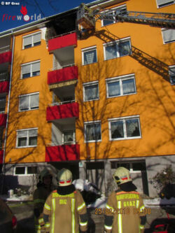 GRAZ (STMK): Ein Brand auf einem Balkon im 3. OG eines Mehrparteienhauses forderte am Vormittag des 25. Februar 2018 die Einsatzkräfte der Berufsfeuerwehr und der Freiwilligen Feuerwehr der Stadt Graz.
