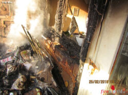 Da die Gefahr einer Brandausbreitung unter der Fassade in den Dachstuhl gegeben war, sicherte ein 3. Atemschutztrupp den Dachraum während unter Zuhilfenahme einer Drehleiter die Fassade großflächig geöffnet wurde. Der Brand konnte binnen Minuten unter Kontrolle gebracht, jedoch waren aufgrund der Lagerung von Unmengen an Zeitungen, Büchern und Zeitschriften am Balkon umfangreiche Ausräum- und Nachlöscharbeiten notwendig.