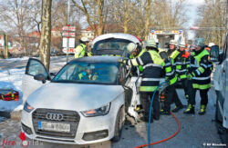 Bei einem Verkehrsunfall in Schwabing ist am Morgen des 26. Februar 2018 eine Frau in ihrem Fahrzeug eingeklemmt und schwer verletzt worden. Im Kreuzungsbereich der Infanteriestraße und Barbarastraße kam es zum Zusammenstoß zwischen einem Mercedes Sprinter und dem Audi einer 22 Jahre alten Frau. Ein Smart wurde ebenfalls bei dem Zusammenstoß noch leicht touchiert. Dabei wurde die 22-jährige Frau in ihrem Fahrzeug eingeklemmt. Sofort wurde ein