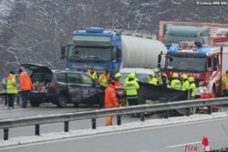 Da der rechte Fahrstreifen wegen des Verkehrsunfalls blockiert war, wechselten andere Fahrzeuge auf den linken Fahrstreifen, um an der Unfallstelle vorbeizufahren. Genau zu dem Zeitpunkt, als der Lkw-Fahrer sein Fahrzeug verlassen hatte und auf der Fahrbahn stand, wurde er von einem 48-jährigen Ungarn mit einem Citroen-Kleinbus erfasst und gegen den querstehenden Seat gedrückt. Durch den Aufprall wurde der Seat nochmals gedreht und der tschechische Lkw-Fahrer blieb mitten auf der Fahrbahn liegen.