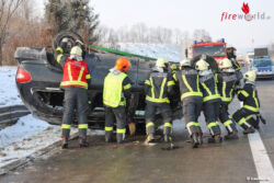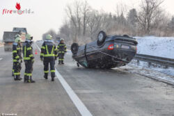VORCHDORF (OÖ): Glimpflich endete Mittwochfrüh, 28. Februar 2018, ein Überschlag mit einem Auto auf der Westautobahn bei Vorchdorf (Bezirk Gmunden).