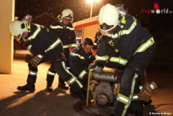 Eine Person steckt, wegen des Stromausfalles, in einem Aufzug fest. Als die ersten Feuerwehrmitglieder das Feuerwehrhaus erreichen, müssen diese feststellen, dass sich die elektronische Schließanlage der Haupteingangstüre nicht öffnen lässt. Da ein manuelles Sperren nicht möglich ist, verschaffen sich die Einsatzkräfte vorerst den Zutritt über einen Nebeneingang des Feuerwehrhauses. In völliger Dunkelheit, aber großteils unter Zuhilfenahme eingebauter Taschenlampen in den persönlichen Smartphones, werden die Wege zur Garderobe und Fahrzeughalle gesucht, da keine Notbeleuchtung vorhanden ist. Doch bevor an ein Ausrücken zu denken ist, müssen die Ausfahrtstore auf manuellen Betrieb umgestellt werden. Nachdem nun schon viel wertvolle Zeit verstrichen ist, langt die nächste Alarmierung ein. Eine Hebeanlage funktioniert nicht mehr, wodurch Wasser in einen Keller eindringt. Dem nicht genug, kommt es aufgrund des Ausfalles einer Ampelanlage zu einem Verkehrsunfall.