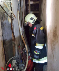 Um den Schaden zu minimieren, wurden mit einer Kübelspritze Löschmaßnahmen eingeleitet. Mit einer Wärmebildkamera wurde die genaue Lage der Glutnester lokalisiert. Dazu mussten einige Teile einer Trockenbauwand und der Decke entfernt werden. Bereits nach kürzester Zeit konnte „Brand aus“ gegeben werden.